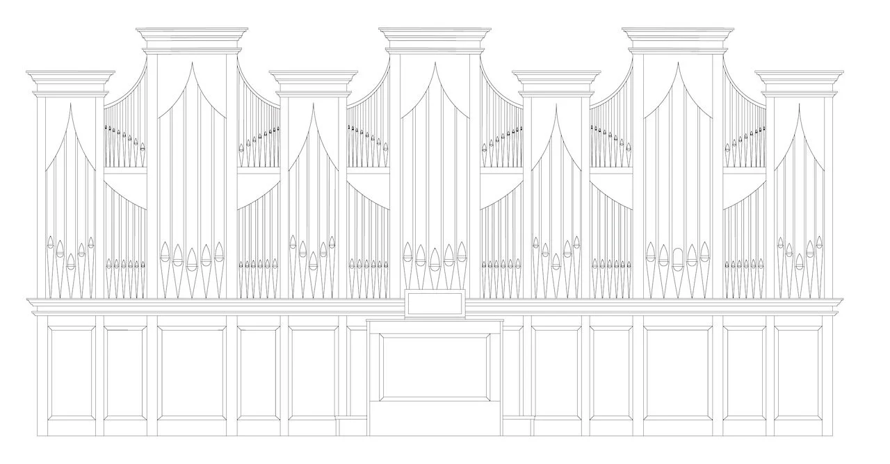 The tonal scheme for the organ will be inspired by the great 18th century abbey organs of central Europe, filtered through the modern, distinctive personal style for which Martin Pasi is known. The organ will be housed in a wide hardwood case with the “Hauptwerk” (Great) division in the center, flanked by two “Seitenwerk” (side) divisions in swell enclosures. The Pedal division will reside behind the main case, and the organist will be able to both accompany and direct the choir from a reversed, detached console. Opus 1 is scheduled for completion in 2025.